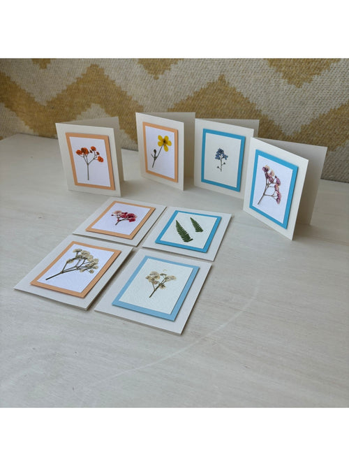 Håndlagde kort med pressede blomster